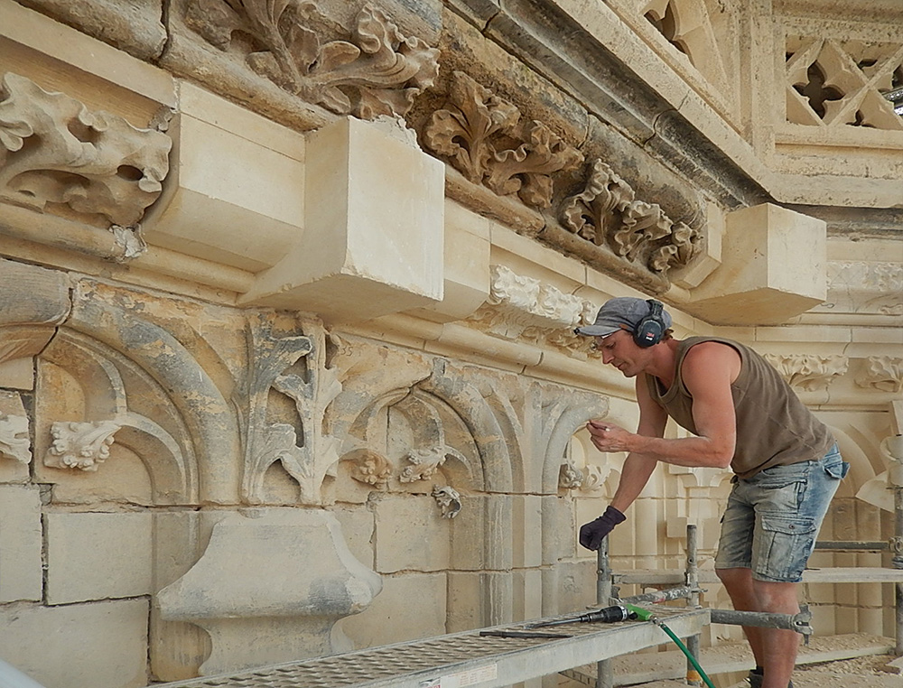 - transport vers l’atelier des sculpteurs pour réalisation de copie en pierre de Lavoux ;