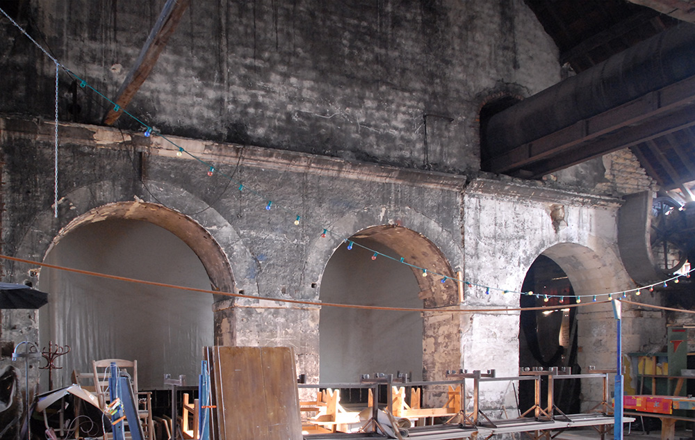 L’intervention est minimaliste, totalement réversible et conserve l’esprit industriel et brut de l’édifice. La salle est surtout utilisée en été, ponctuellement l’hiver.