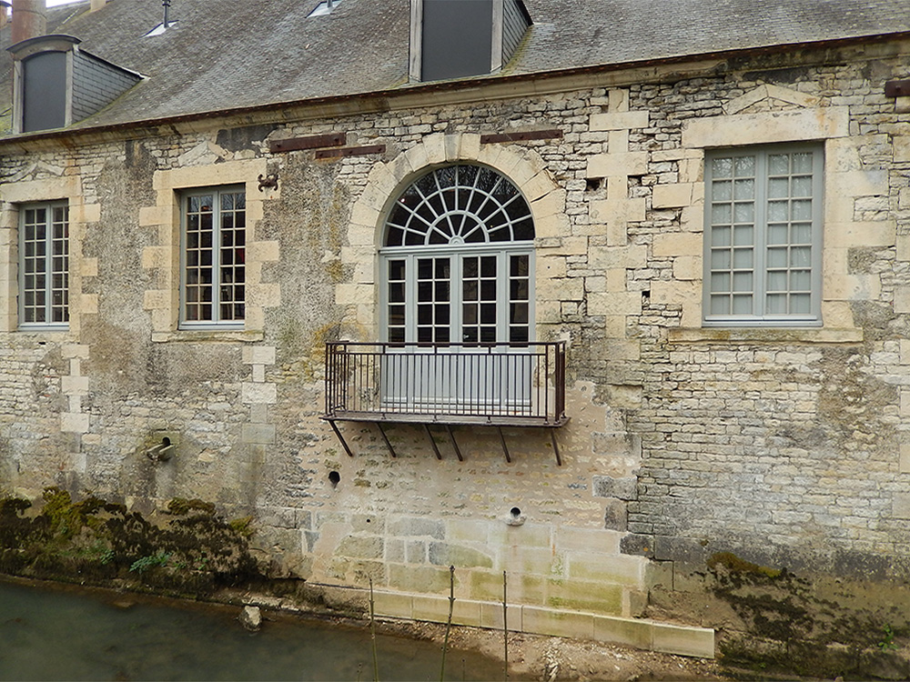 La restauration des maçonneries est très sommaire. Les menuiseries sont remplacées à l’identique, selon une restitution fidèle des modèles du XVIIIe siècle. L’occultation des baies est réalisée par des volets bois aux portes et fenêtres et des panneaux en contreplaqué aux lucarnes, aucune trace ou document ne donnant de certitude sur le type de menuiseries qui ont pu les fermer.
